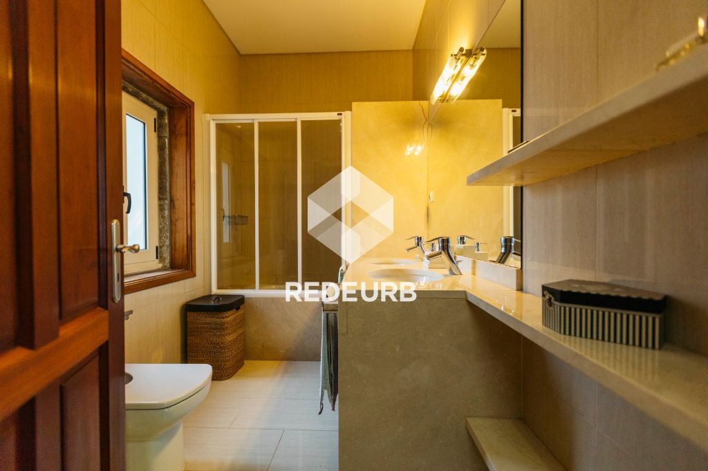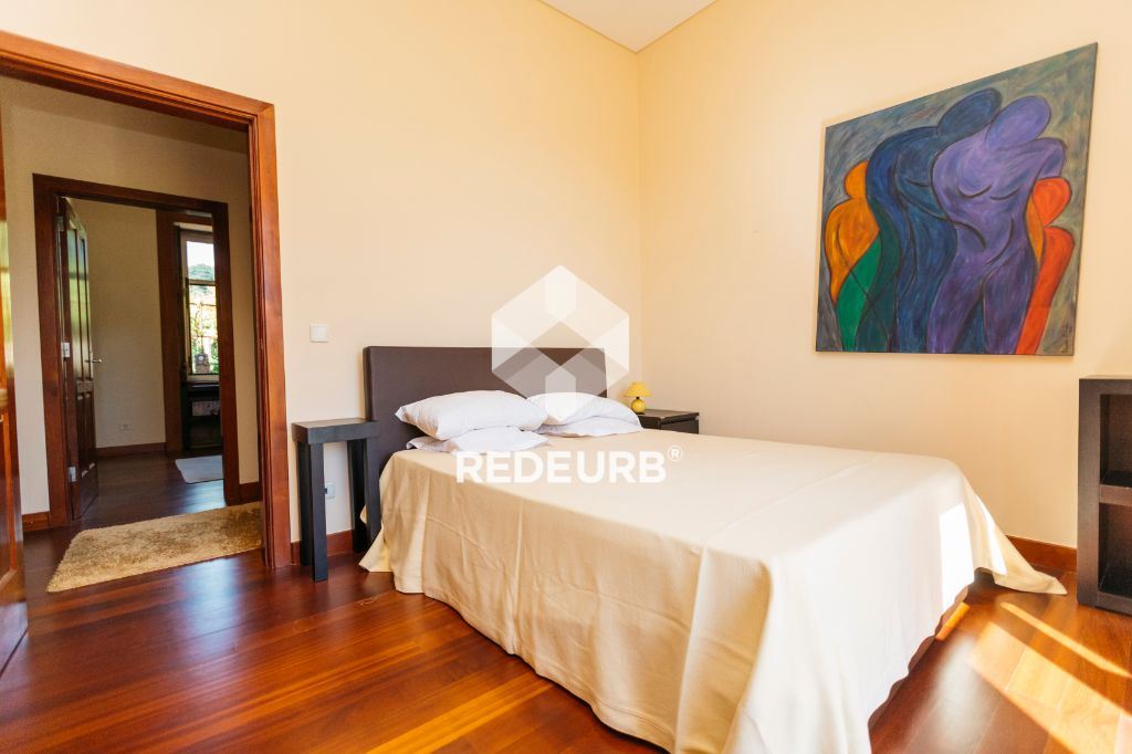 Piso "1": sala com recuperador de calor e varanda, 4 suites com óptima exposição solar, 1 suite master com acesso ao alpendre, armários embutidos e ar-condicionado,