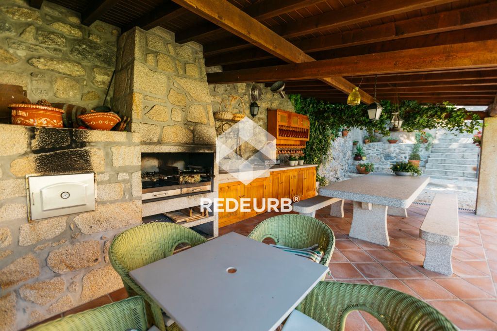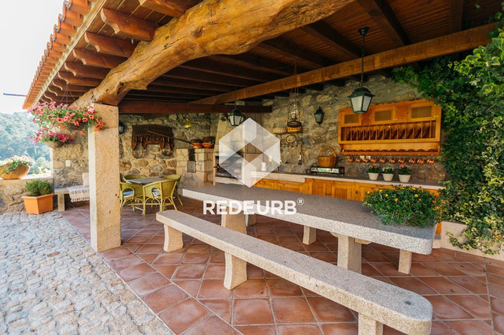 Churrasqueira com cozinha tradicional, mesa e bancos todos em pedra, e ainda forno tradicional para cozer pão;
